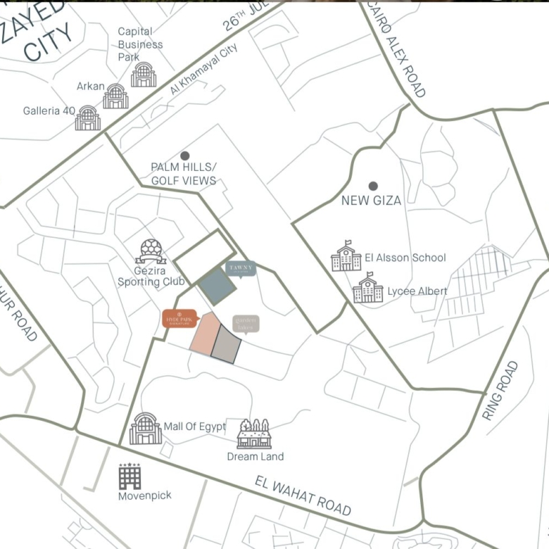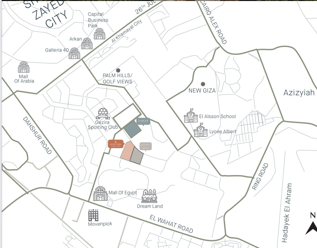 Thanks to this strategic location, Hyde Park West Garden Lakes is neighboring other fancy developments and surrounded by the popular attractions of both October City and El Sheikh Zayed.Â